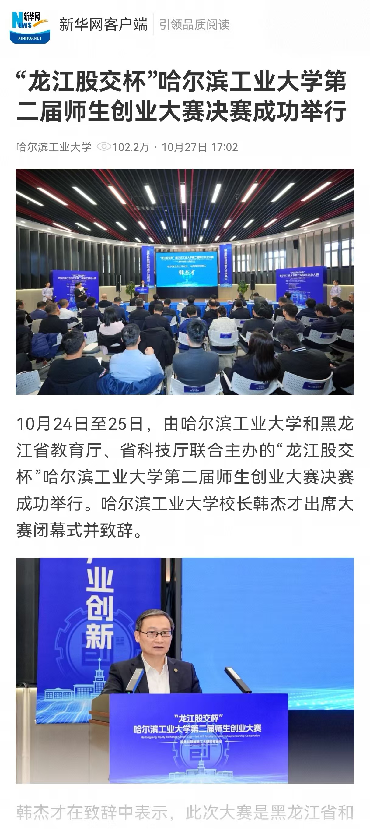 五、哈工大师生创业大赛品牌影响力大幅提升